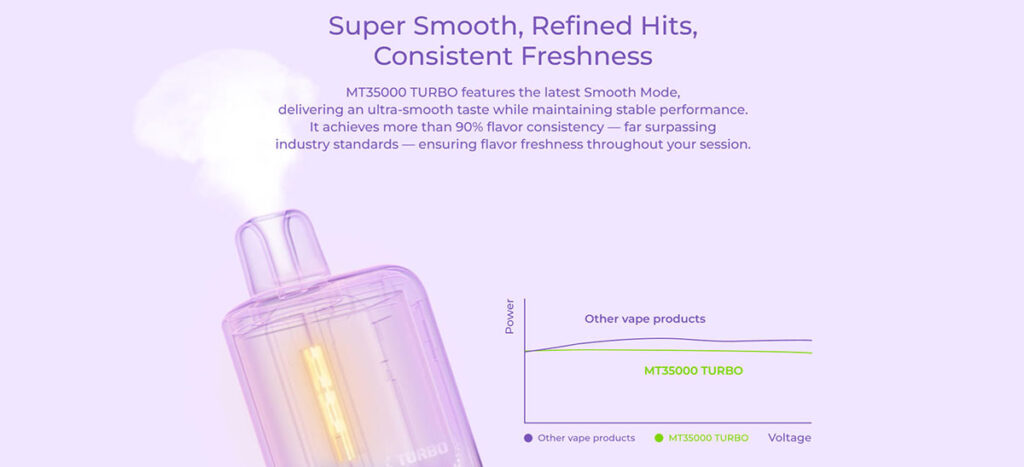 Beyond performance, the MT35000 Turbo delivers unmatched flavor consistency. Its 18ml e-liquid capacity and super smooth taste system provide full-bodied flavor with every puff. The Blend-in Display adds a touch of futuristic style, making it not only functional but also visually appealing on any retail shelf.