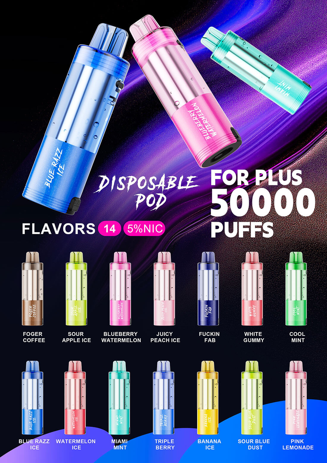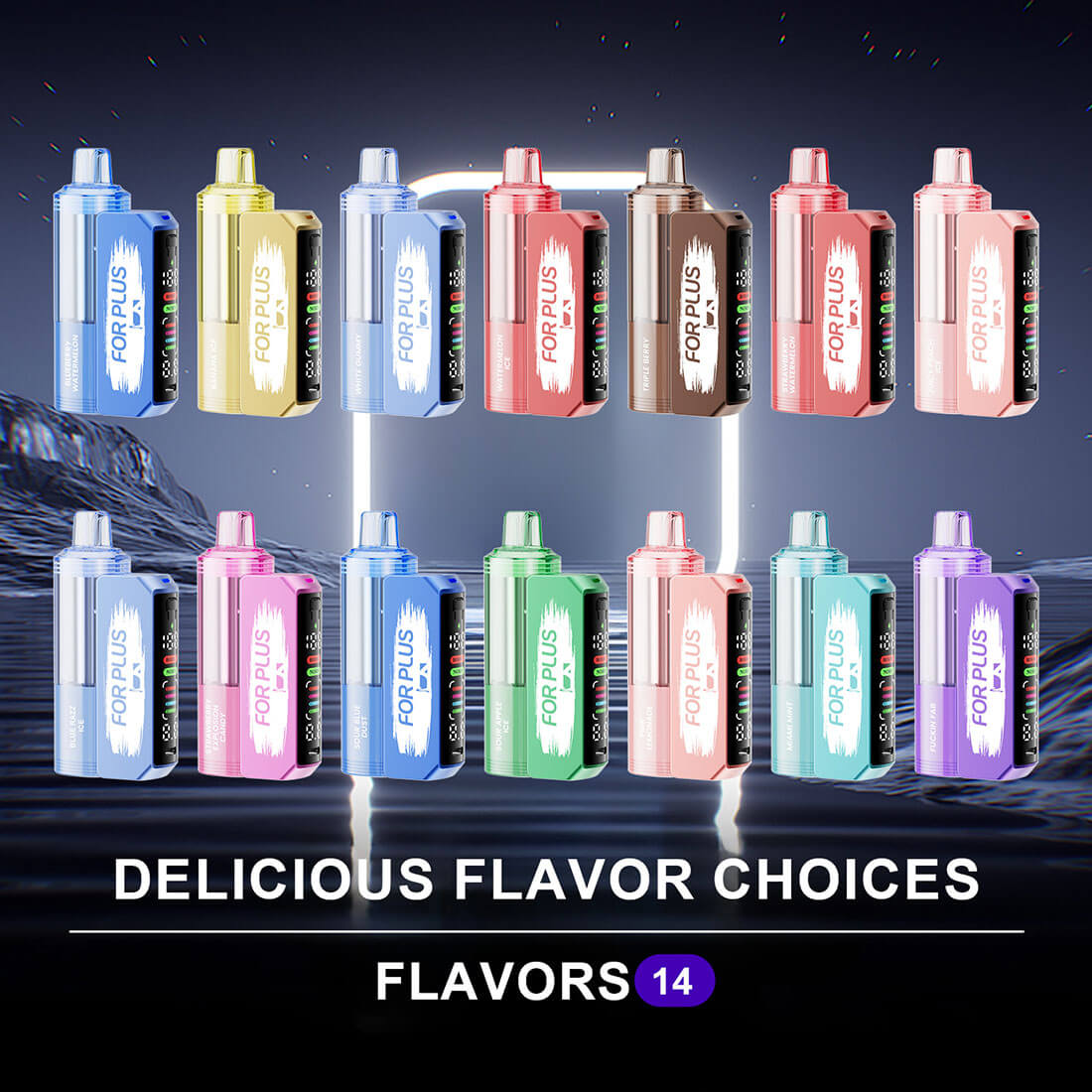 Offering 50,000 puffs, 25ml e-juice capacity, and 5% nicotine strength, this device ensures excellent value and long-lasting performance—ideal for partners wanting to expand their disposable vape lineup. The For Plus comes in 14 flavors, including Watermelon Ice, Blue Razz Ice, Juicy Peach Ice, Sour Apple Ice, Triple Berry, White Gummy, Pink Lemonade, Foger Coffee, Cool Mint, Miami Mint, and more, giving businesses a wide selection to meet different market needs.