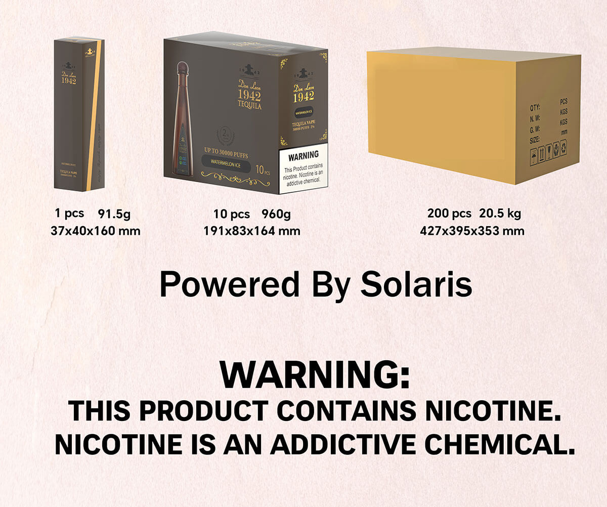 The TEQUILA Don Leon 1942 Disposable Vape 30000 Puffs is a ready-to-sell branded disposable vape designed for distributors and wholesalers seeking a premium, high-capacity product with strong visual appeal. Featuring a cool liquor bottle–shaped design, this device stands out on retail shelves and attracts adult consumers looking for something bold, stylish, and different from standard disposable vapes.