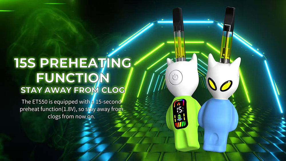 This device features a colorful display screen that clearly shows voltage level, battery life, and smoking time. Users can easily monitor their device status during use. The battery also includes a 1.8V preheating function (15 seconds), helping to warm thick CBD oil and ensure smooth and consistent vapor production.