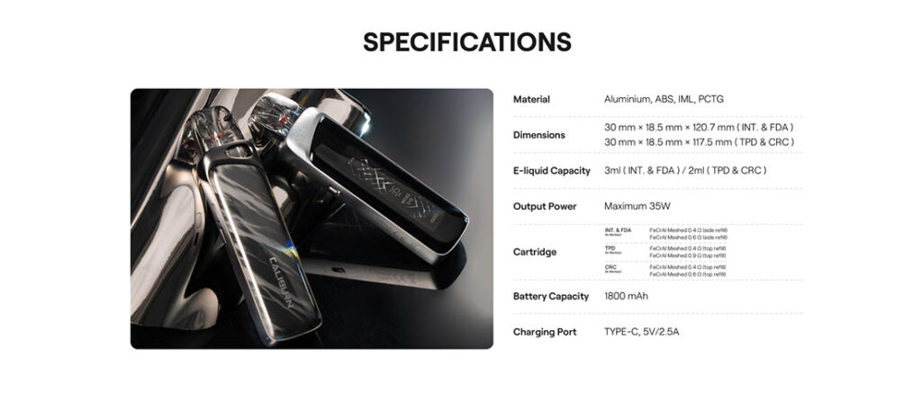 The Caliburn G4 Pro is equipped with an 1800 mAh built-in battery, supporting extended use between charges. Power output tops out at 35 W, which gives a solid balance between flavor delivery and device longevity. - Multiple Output Modes & Customization